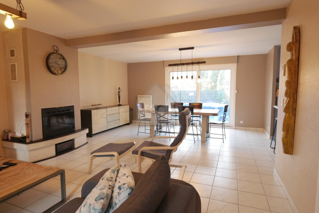 - un bel espace à vivre salon séjour cuisine équipée ouvert ; Le salon dispose d’un insert à granulés🔥
