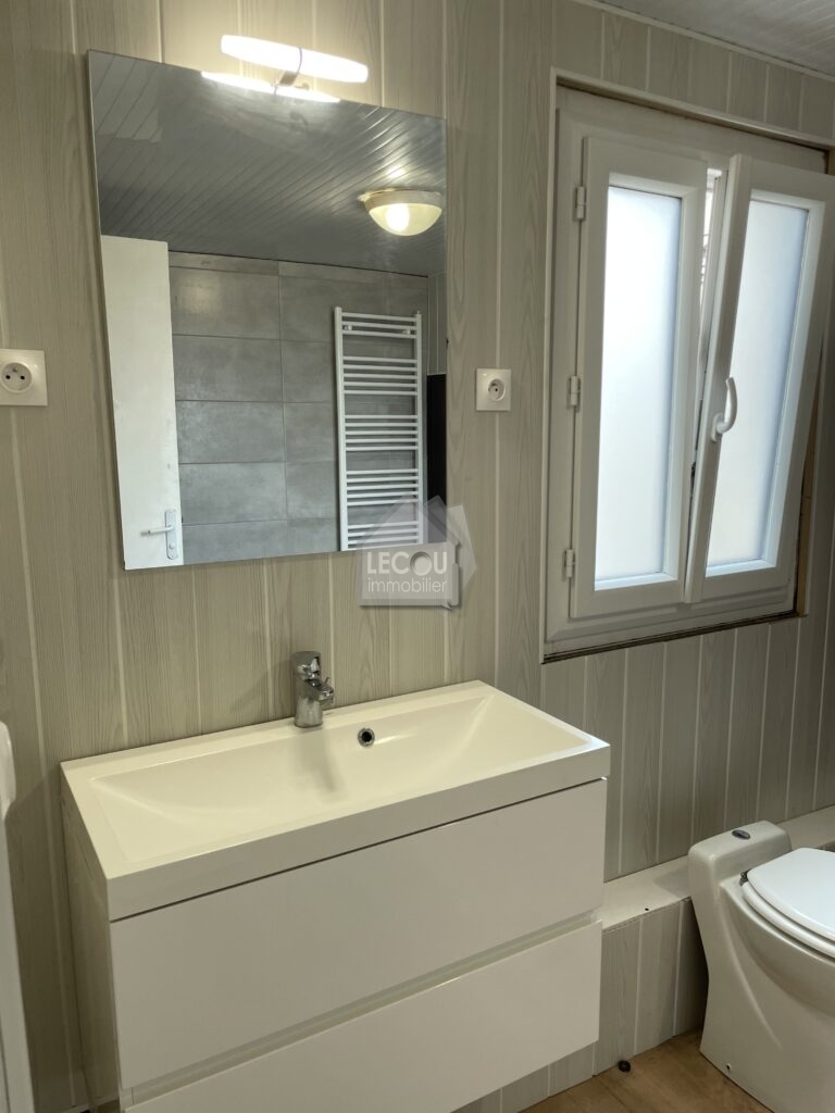 A l’étage, le logement propose un vaste palier possibilité de bureau, deux belles chambres, ainsi qu’une salle de bain avec toilettes et un grand rangement.
